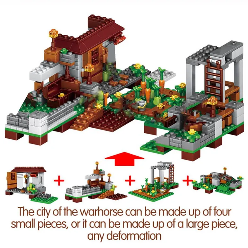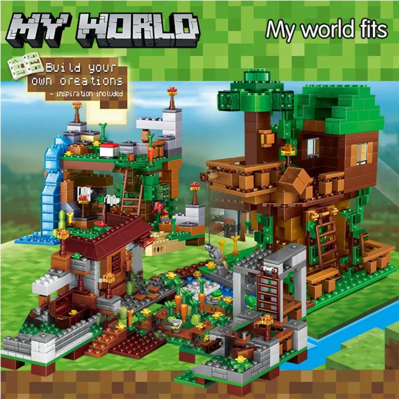 ORIGINAL 1208 pcs Building Blocks legoed My World Village Warhorse City Tree House Waterfall Bricks Educatio